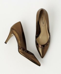 かっちりしたシンプルなパンプスも似合いますが服がシンプルなので、遊びのあるデザインを選ぶのがおすすめです。