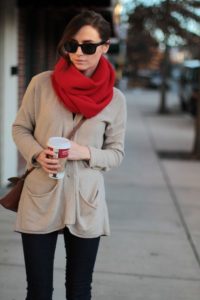 あまり寒くないときは、私は首にかけてたらすだけにして、縦ラインを強調するのですが、