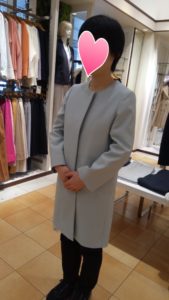 *お客様に着ていただいたスプリングコートたち確実に似合う形から、少し理論からはずれたものまでいろいろお試しいただきます。