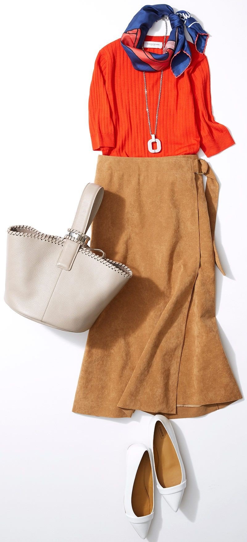 でも、春夏はボトムスやトップスに、生成り色や明るい茶色をもってきたり、サーモンピンクを組み合わせると、季節感もちゃんとコントロールできます。下の画像はオータムのお客様に明るい色の組み合わせをお伝えしたときのもの。
