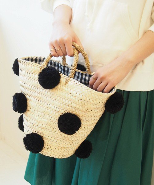 小ぶりでフェミニンなデザインが得意のウェーブタイプの方におすすめなのは、小さめで装飾のあるかごバッグ。