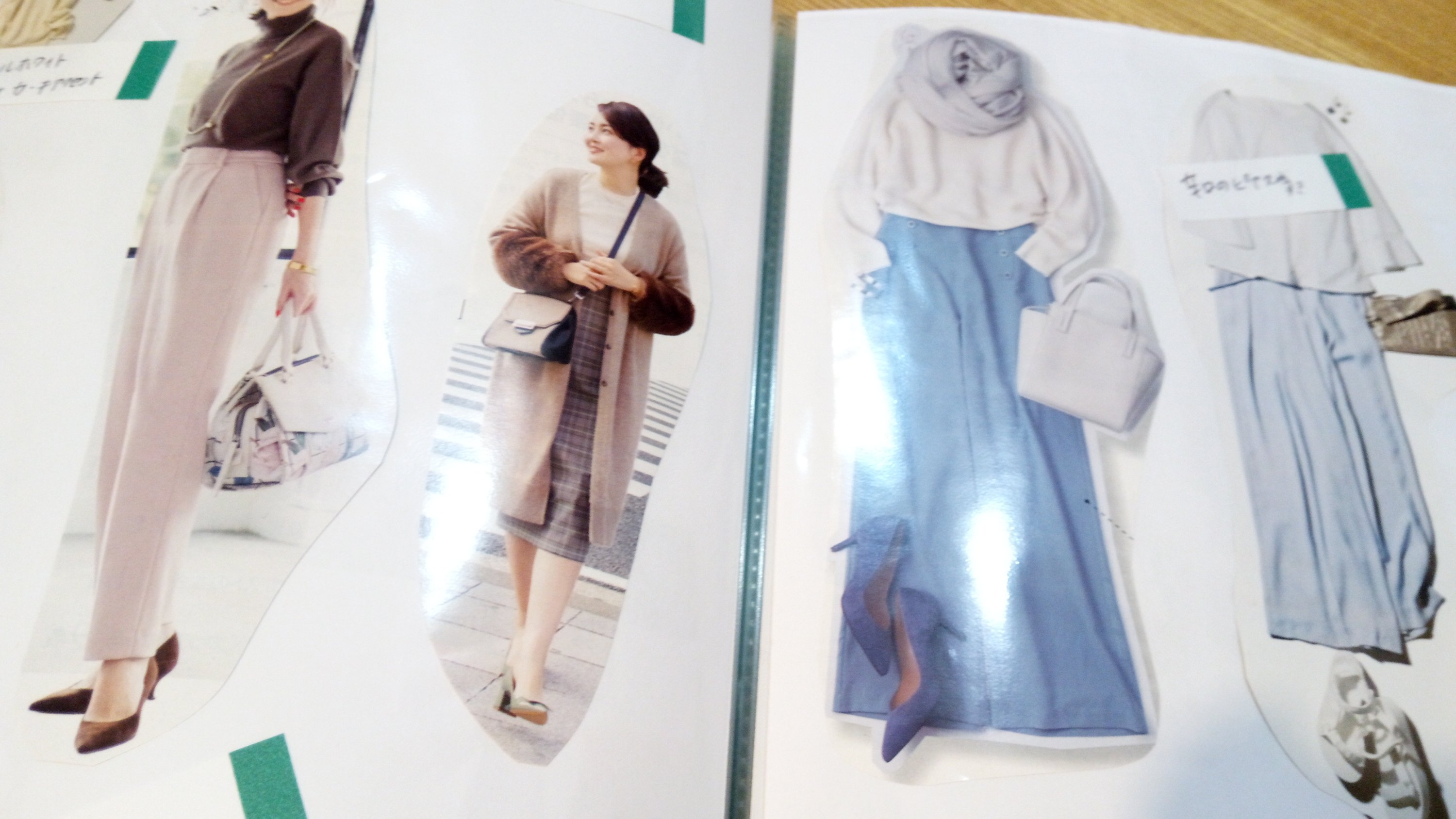 最後は切抜きと自分の今の服を照らし合わせて、素敵だなと思ったコーディネートがすぐ真似できないか、もしくは、どんなアイテムが足りないのか、などを見ていきます。