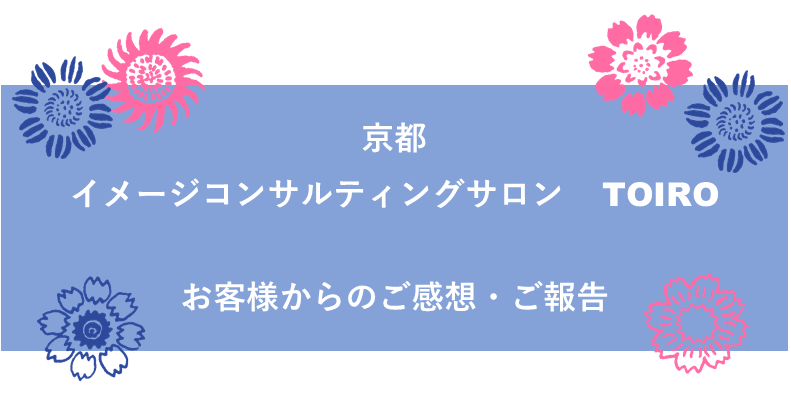 こんにちは! 京都のイメージコンサルティングサロンTOIROです。 先週も素敵なお客様との出会いがありました❤ ホームページをみて遠方から新幹線でお越しくださいました。イメージコンサルティングの勉強の傍ら、… もっと読む 【お客様の声】思いきって京都まできて良かった